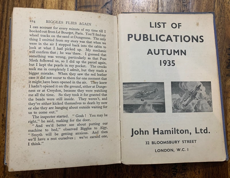 Faded /dull gilt lettering on spine , top edge of pages tinted blue, 1935 Autumn catalogue to rear as required and Black Peril is not listed as a title.