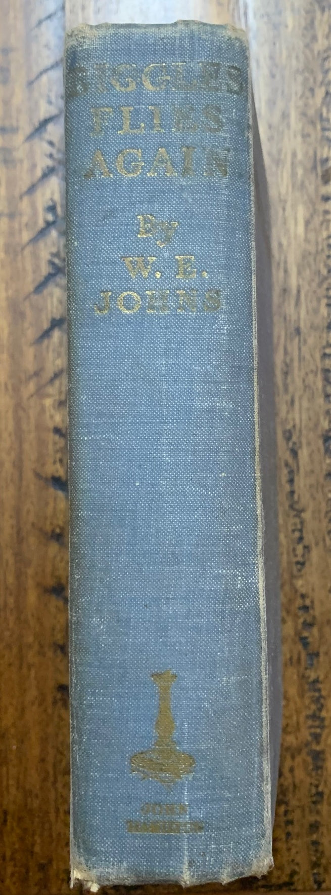 Foxing to the compressed page edges and pages. Corner of 1 page has a small piece missing (fingertip size). Remains of prize plate to back of front board. Colour frontis and 3 b/w plates by Howard Leigh, 1 b/w plate by W E Johns (Total of 5 plates as called for). Book is provided with a colour copy of the jacket. Over 500 grams packed